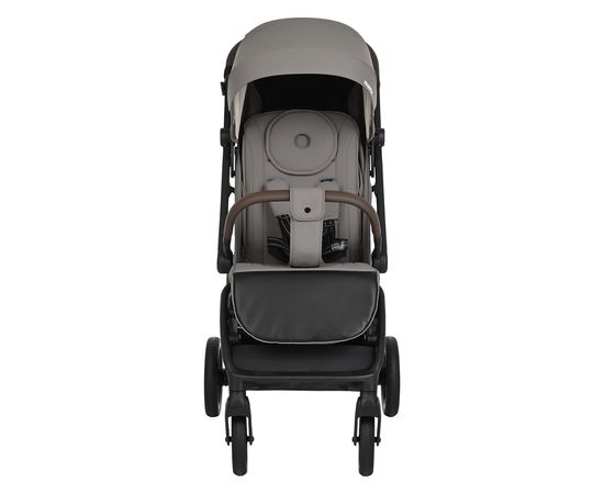Прочная ручка из эко-кожи приятна на ощупь. Удобная конструкция помогает легко складывать коляску одним нажатием кнопки.