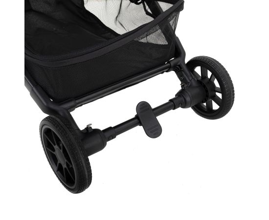 Передние колеса легко вращаются вокруг своей оси под углом 360 градусов. Они обеспечивают шасси дополнительную маневренность, значительно облегчая родителям поездку между полками магазинов.
