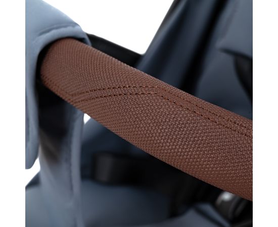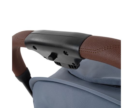 Прочная ручка из эко-кожи приятна на ощупь. Удобная конструкция помогает легко складывать коляску одним нажатием кнопки.