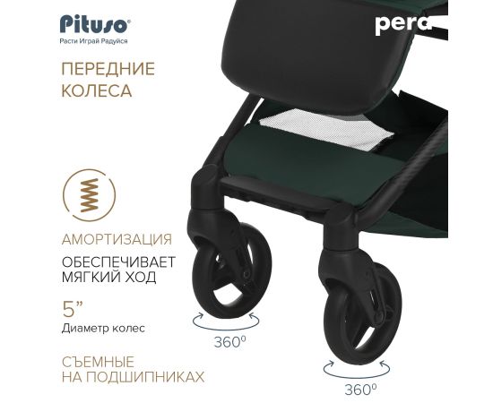 Благодаря прочной конструкции из карбона (а он гораздо прочнее и легче стали!) и надежному шасси детская коляска PITUSO PERA может использоваться как универсальная коляска. Хорошая проходимость, качественная амортизация с дополнительной системой ANTISHOCK на передних колесах и повышенная маневренность.