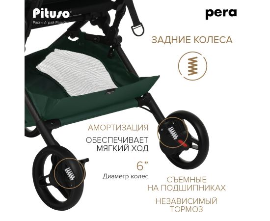 PITUSO коляска детская PERA (прогулочная)Army green/рама carbon/PU
