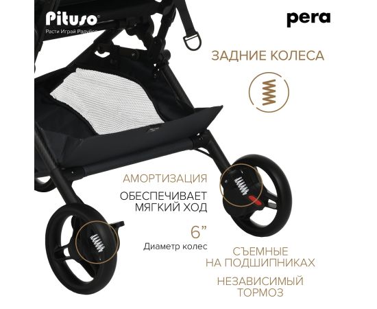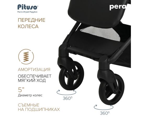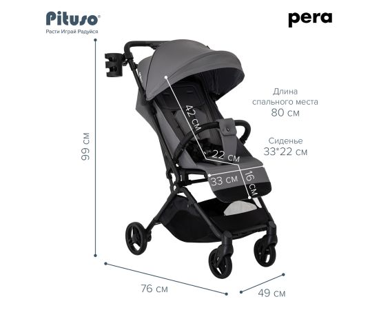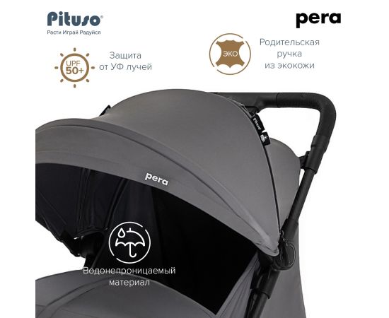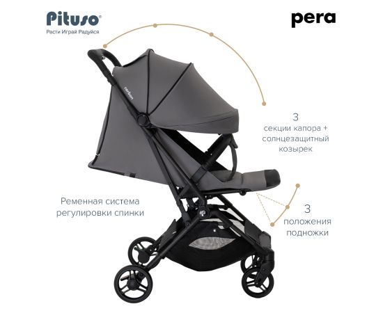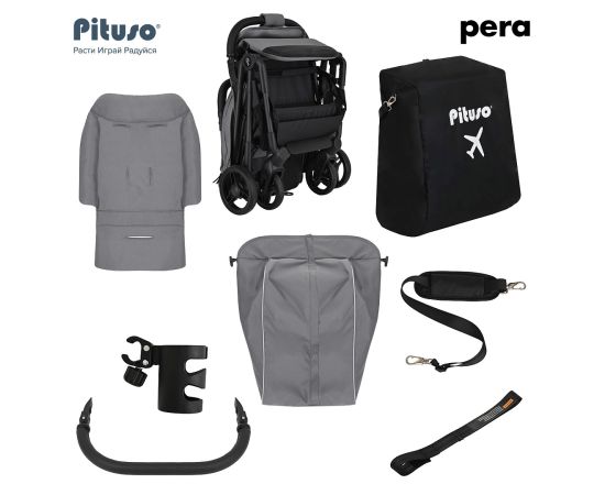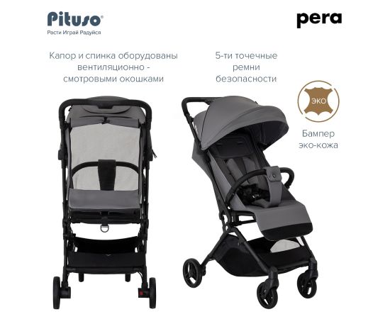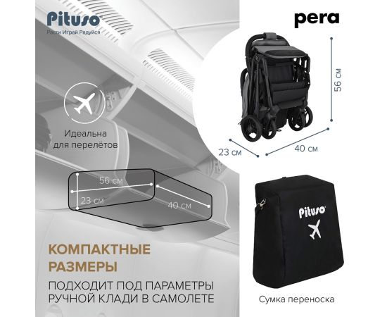 Новая версия стильной, маневренной и легкой (5.7 кг) прогулочной коляски PITUSO PERA идеально подходит не только для прогулок, но и путешествий. Складываясь одной рукой до очень компактных размеров, коляска подходит под параметры ручной клади в самолете.