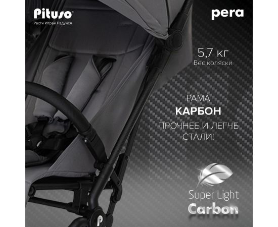 PITUSO коляска детская PERA (прогулочная)Grey Taupe/рама carbon/PU