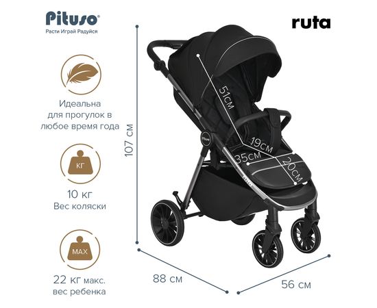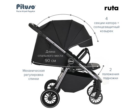 Pituso прогулочная коляска Ruta – качественная и стильная прогулочная модель, идеально адаптирована и для прогулок и путешествий на свежем воздухе, имеет надежную прочную конструкцию. Данная модель представлена в разных расцветках и влюбляет в себя с первого взгляда. Коляска имеет компактный легкий каркас. Она подарит комфорт и удобство не только ребенку но и его маме.