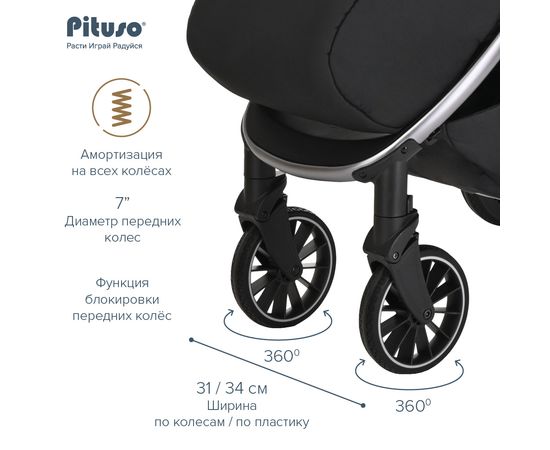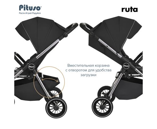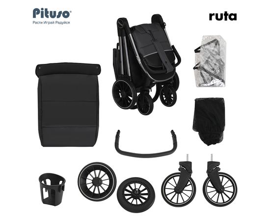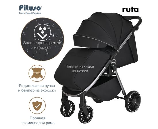 PITUSO Коляска детская RUTA (прогулочная), Black/Черный/чехол на ножки/PU