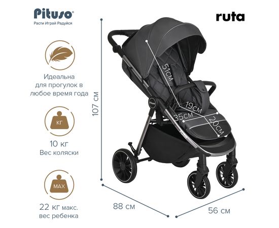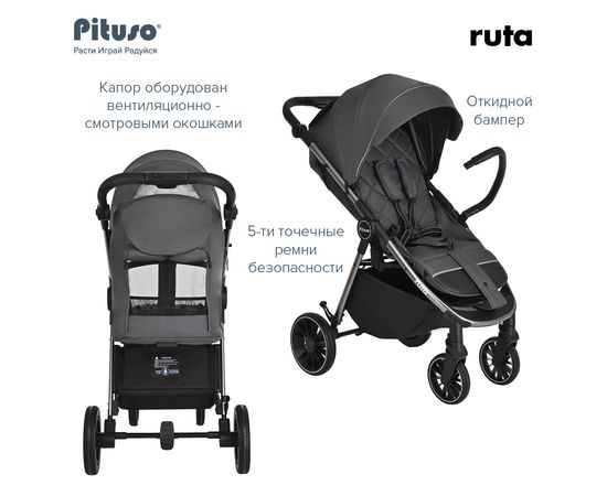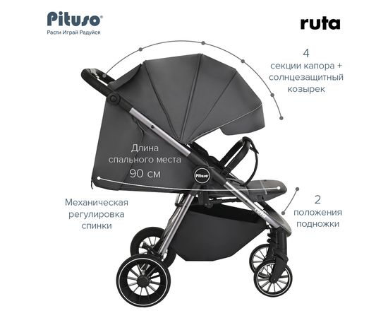 Pituso прогулочная коляска Ruta – качественная и стильная прогулочная модель, идеально адаптирована и для прогулок и путешествий на свежем воздухе, имеет надежную прочную конструкцию. Данная модель представлена в разных расцветках и влюбляет в себя с первого взгляда. Коляска имеет компактный легкий каркас. Она подарит комфорт и удобство не только ребенку но и его маме.