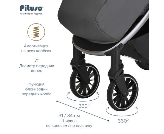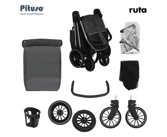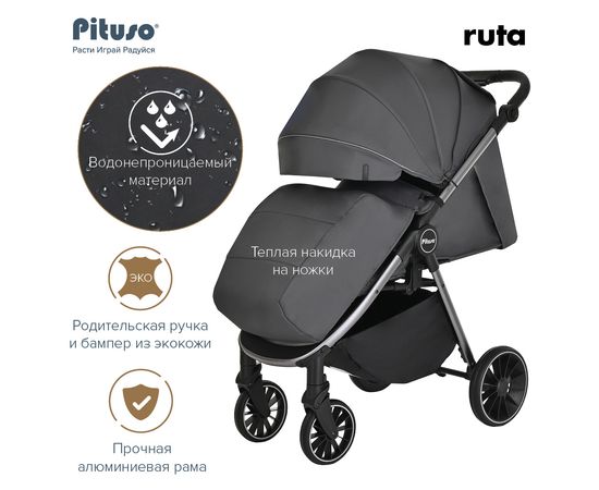 PITUSO Коляска детская RUTA (прогулочная), Dark Grey/Темно-Серый/чехол на ножки/PU