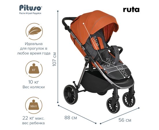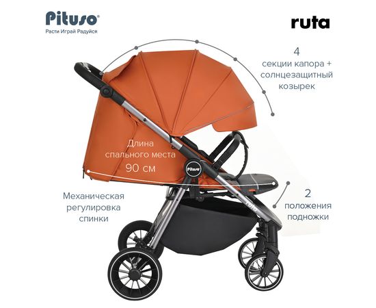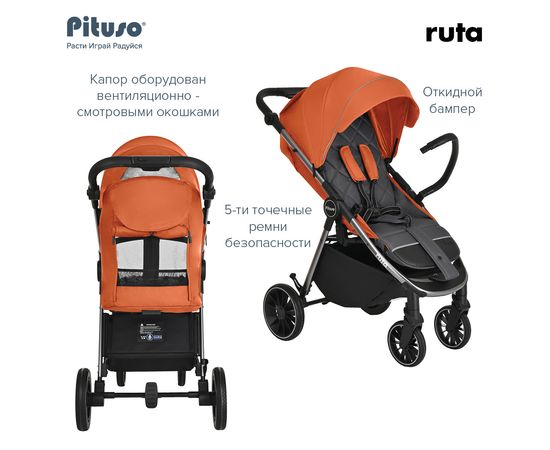 Pituso прогулочная коляска Ruta – качественная и стильная прогулочная модель, идеально адаптирована и для прогулок и путешествий на свежем воздухе, имеет надежную прочную конструкцию. Данная модель представлена в разных расцветках и влюбляет в себя с первого взгляда. Коляска имеет компактный легкий каркас. Она подарит комфорт и удобство не только ребенку но и его маме.