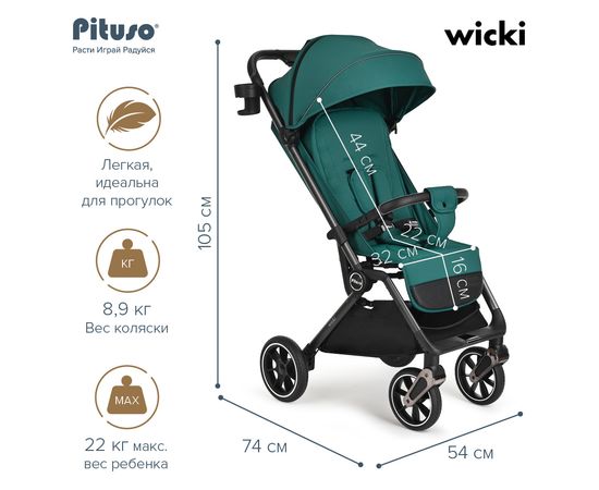 PITUSO коляска детская WICKI (прогулочная)Emerald/Изумруд/PU
