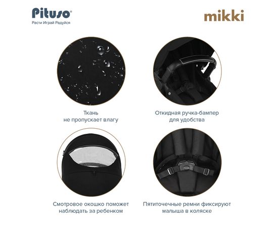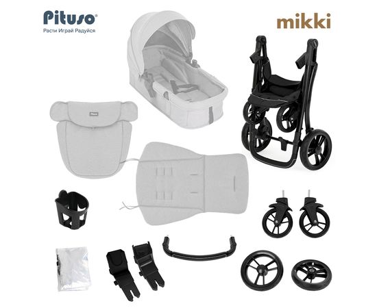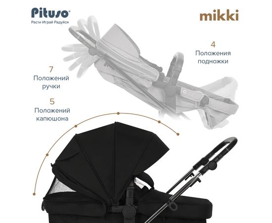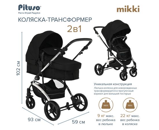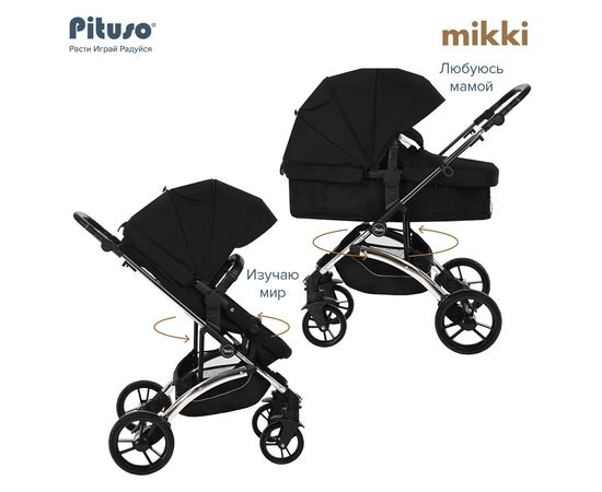 PITUSO Коляска трансформер MIKKI Black/Черный/Chrome/PU