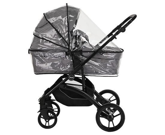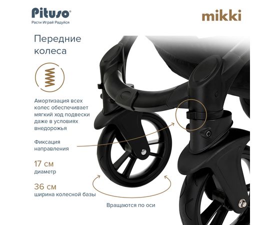 Надёжные износостойкие колёса с покрытием PU не требуют подкачки и снабжены амортизаторами – ребёнок будет сладко спать даже в прогулках по неровной дороге. Для максимальной манёвренности передние поворотные колёса имеют возможность фиксации направления. Ножной тормоз в мгновение останавливает оба задних колеса. Большой козырёк защитит малыша от ярких солнечных лучей и ветра, а смотровое окошко на капюшоне позволит всегда быть в поле зрения мамы. В большую корзину поместится всё необходимое – не нужно нести покупки или игрушки в руках.
