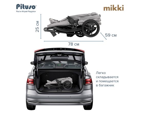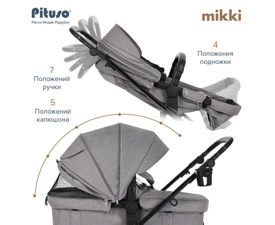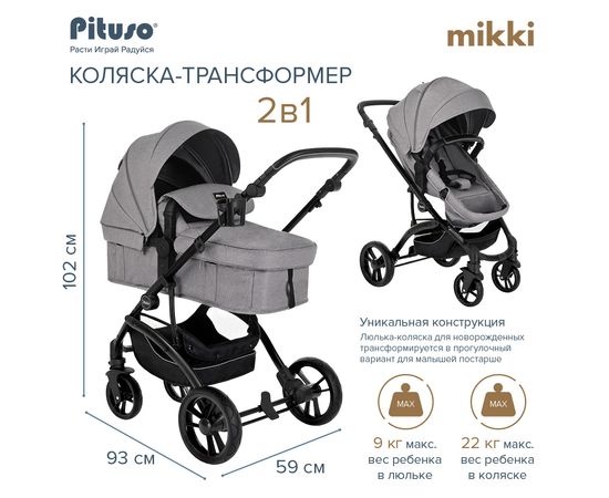 PITUSO Коляска трансформер MIKKI Grey/Серый/Black/PU