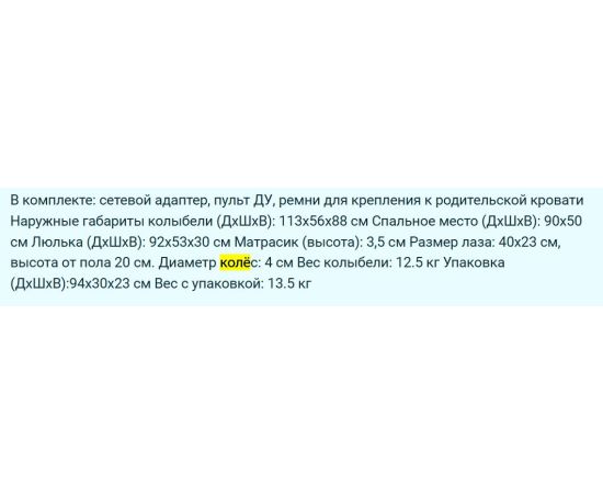 Наружные габариты колыбели (ДхШхВ): 113х56х88 см