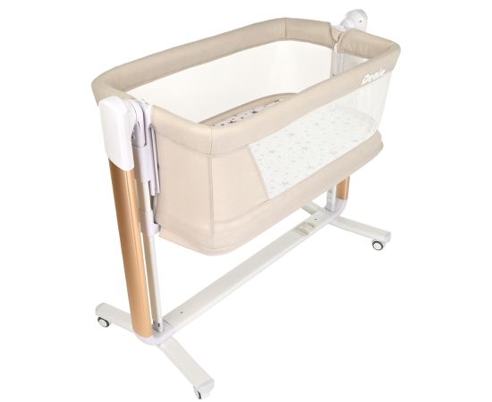 Колыбель можно использовать как самостоятельную детскую кроватку. Предусмотрена регулировка высоты люльки. Ножки оборудованы колесами с возможностью фиксации. Прочная надежная сетка с молниями позволяет родителям присматривать за ребенком. Матрасик имеет съемный чехол на молнии. Боковой бортик легко опускается и поднимается обратно. При использовании колыбели в качестве приставной кроватки рекомендуется крепление к родительской кровати при помощи специальных ремней (входят в комплект). Также мама может приподнять изголовье ложа, что улучшит дыхание малыша во время простудных заболеваний и снизит риск срыгивания после кормления. Регулируемая высота опор дает возможность создать наклон до 30°