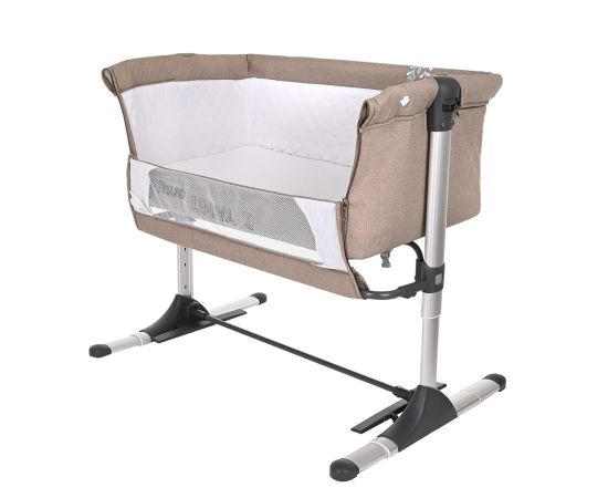 Полозья превращают изделие в колыбель для укачивания. Также мама может приподнять изголовье ложа, что улучшит дыхание малыша во время простудных заболеваний и снизит риск срыгивания после кормления. Регулируемая высота опор дает возможность создать наклон до 30°. Колыбель PITUSO KALMA оснащена специальной системой крепления, благодаря которой фиксировать ее к кровати родителей очень просто (крепится к кровати родителей с помощью ремней). Боковой бортик опускается для присоединения к кровати родителей и поднимается обратно. Прочная алюминиевая рама имеет 4 уровня регулировки высоты и усилена дополнительной защитой против случайного сложения. А кнопки с обеих сторон колыбели предотвращают случайную смену положения высоты. Колыбель можно использовать как самостоятельную детскую кроватку. Сетка в передней части колыбели позволяет родителям присматривать за ребенком.