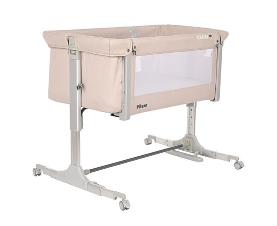 Колыбель PITUSO KALMA DELUX оснащена специальной системой крепления, благодаря которой фиксировать ее к кровати родителей очень просто (крепится к кровати родителей с помощью ремней). Боковой бортик опускается для присоединения к кровати родителей и поднимается обратно. Прочная алюминиевая рама имеет 4 уровня регулировки высоты и усилена дополнительной защитой против случайного сложения. А кнопки с обеих сторон колыбели предотвращают случайную смену положения высоты. Колыбель можно использовать как самостоятельную детскую кроватку. Сетка в передней части колыбели позволяет родителям присматривать за ребенком.