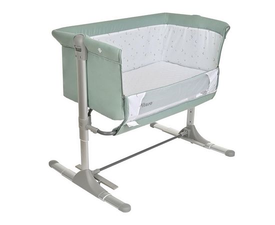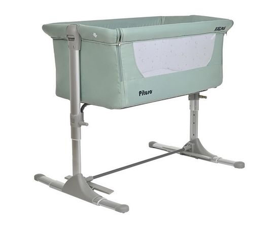 Полозья превращают изделие в колыбель для укачивания. Также мама может приподнять изголовье ложа, что улучшит дыхание малыша во время простудных заболеваний и снизит риск срыгивания после кормления. Регулируемая высота опор дает возможность создать наклон до 30°. Колыбель PITUSO KALMA оснащена специальной системой крепления, благодаря которой фиксировать ее к кровати родителей очень просто (крепится к кровати родителей с помощью ремней). Боковой бортик опускается для присоединения к кровати родителей и поднимается обратно. Прочная алюминиевая рама имеет 4 уровня регулировки высоты и усилена дополнительной защитой против случайного сложения. А кнопки с обеих сторон колыбели предотвращают случайную смену положения высоты. Колыбель можно использовать как самостоятельную детскую кроватку. Сетка в передней части колыбели позволяет родителям присматривать за ребенком.
