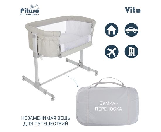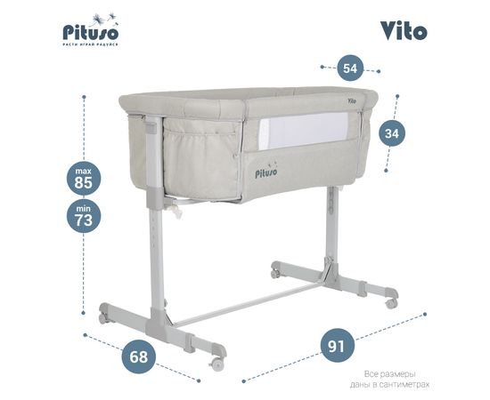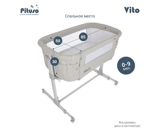 Колыбель Vito 2 в 1 – уютная колыбель, которая с помощью съемного бортика легко и быстро трансформируется в приставную кроватку. Предназначена для детей с первых дней жизни до 9 месяцев.