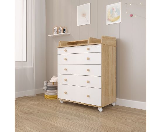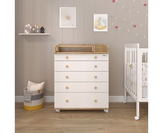 PITUSO Комод раскладной/колесо TORI (5 ящ) Дуб сонома-белый
