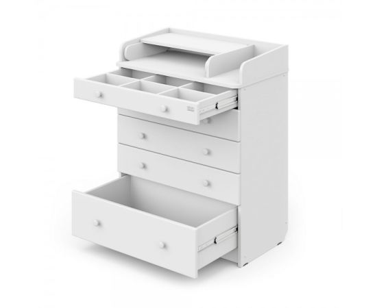 - В комоде используется пеленальный столик с простым и надежным, скрытым механизмом раскладывания.