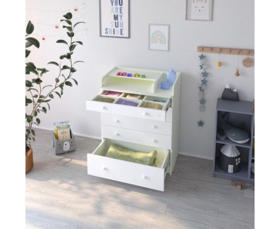 - В комоде используется пеленальный столик с простым и надежным, скрытым механизмом раскладывания.