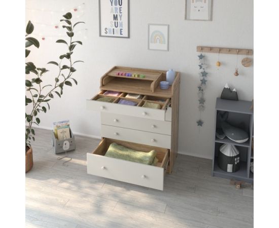 - Нижний ящик большей глубины, а верхний с органайзером для удобства сортировки детских вещей.