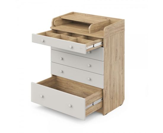 - В комоде используется пеленальный столик с простым и надежным, скрытым механизмом раскладывания.