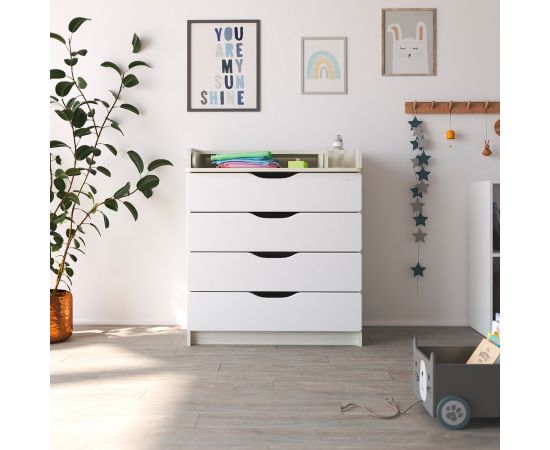 PITUSO Комод раскладной Wood/ 804 ПВХ с шариковыми направляющими Древесина белая, 4 ящика