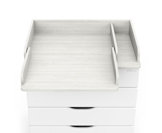 Эргономичный пеленальный комод с отделением для средств по уходу за ребенком. Раскладной пеленальный столик размером 68х52 см. Углы пеленального столика и столешницы комода со скруглением.