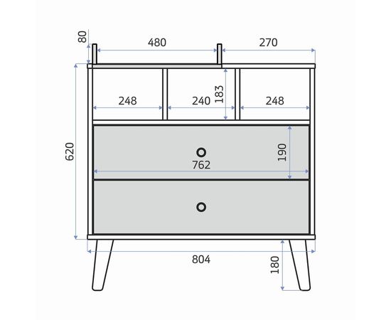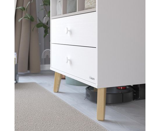 Высота ножек 18 см, поэтому под комодом легко делать уборку или даже можно разместить под ним робот-пылесос.