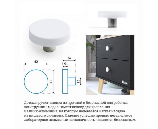 Ножки комода выполнены из массива сосны и покрыты безопасным лаком. В комплекте к ножкам есть мягкие фетровые подпятники, для защиты пола.