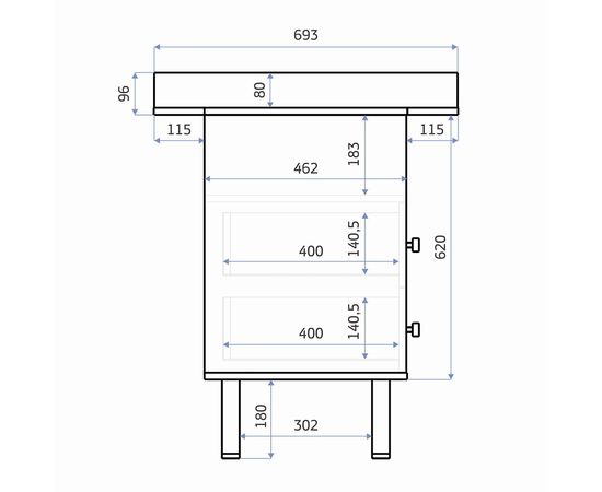Два вместительных ящика оборудованы шариковыми телескопическими направляющими полного выдвижения. Ручки ящиков металлические, надежные с матовой, мягкой и приятной на ощупь шляпкой.