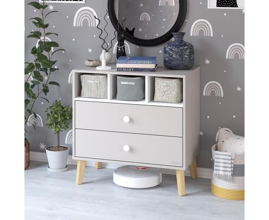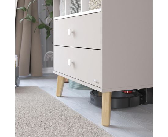 Высота ножек 18 см, поэтому под комодом легко делать уборку или даже можно разместить под ним робот-пылесос.