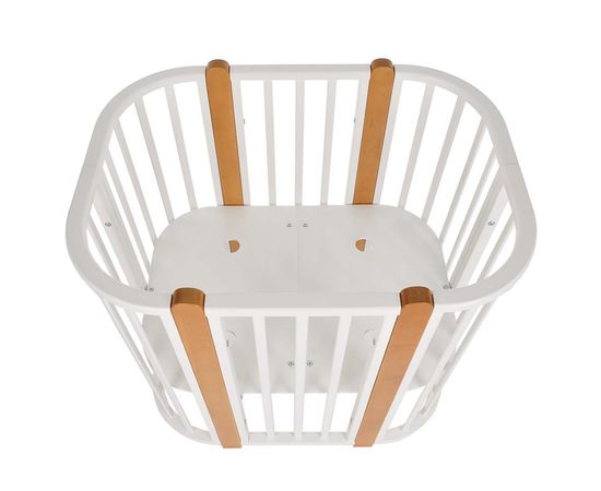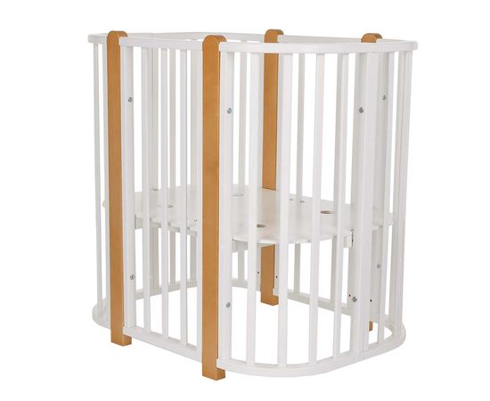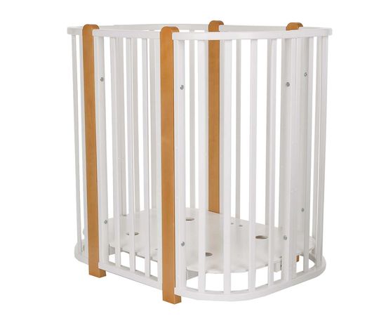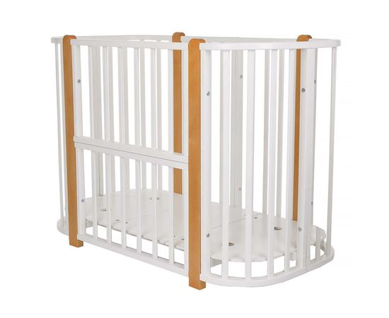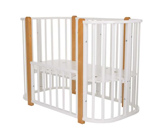 Современная кроватка необычной овальной формы для ребенка с рождения до 3 лет. Уже доказано, что ребенок в первые месяцы после рождения лучше спит в небольшом ограниченном пространстве, там более уютно и спокойно. В этот период рекомендуем использовать колыбель. В дальнейшем, кроватка трансформируется в полноценную овальную кроватку с закругленными углами.