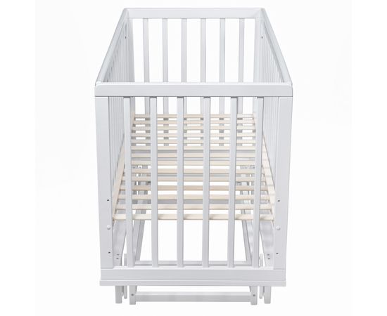 Стенки и дно кроватки – реечные, что создает естественную вентиляцию матраса и спального места и способствует отведению влаги. Благодаря такой конструкции кроватки малыш всегда в поле зрения мамы
