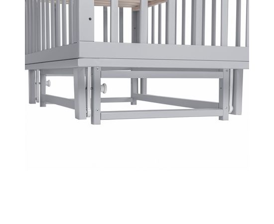 Дно кроватки имеет три положения по высоте. Верхнее удобно для новорожденных - позволяет легко уложить уснувшего кроху, не потревожив его чуткий сон, а убаюкать малыша поможет маятниковый механизм. Когда малыш начнет сидеть, установите среднее положение дна, тем самым обеспечив безопасность растущего непоседы. Нижнее положение подходит для активных деток, стоящих на ножках. Кроватку можно использовать как диванчик