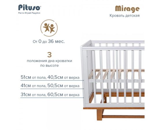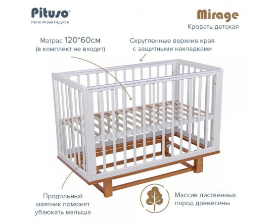 PITUSO Кровать детская маятник/съемная стенка Mirage Белый-бук