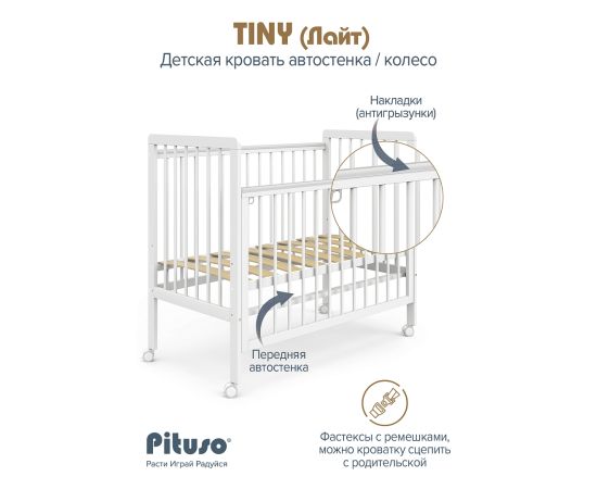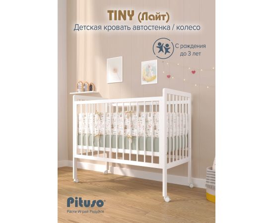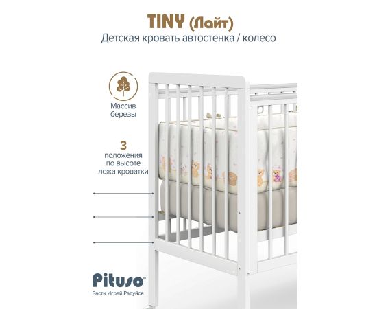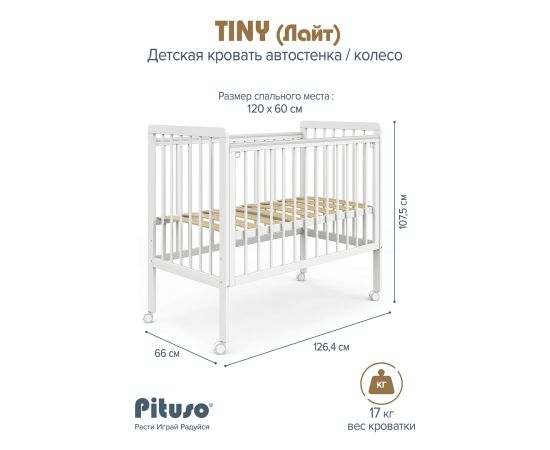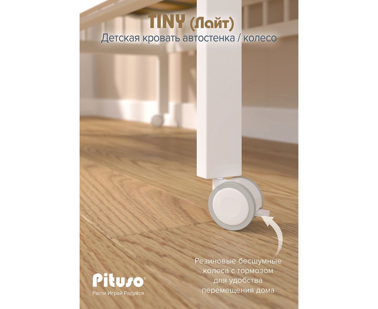 PITUSO Кровать детская TINY (лайт) автостенка/колесо Белая аляска