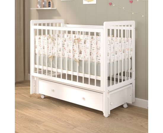 PITUSO Кровать детская TINY ящик-маятник/колесо Белая аляска