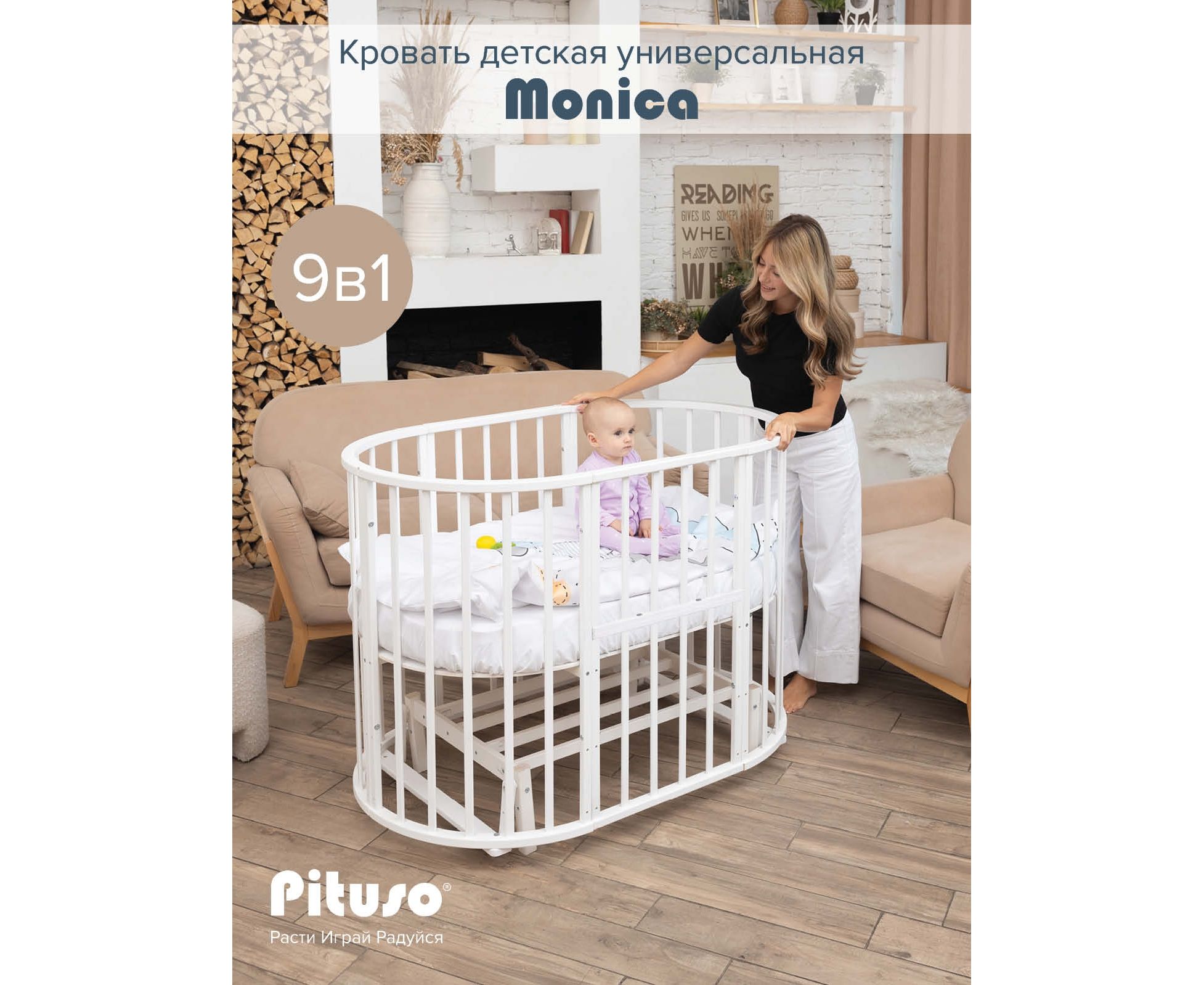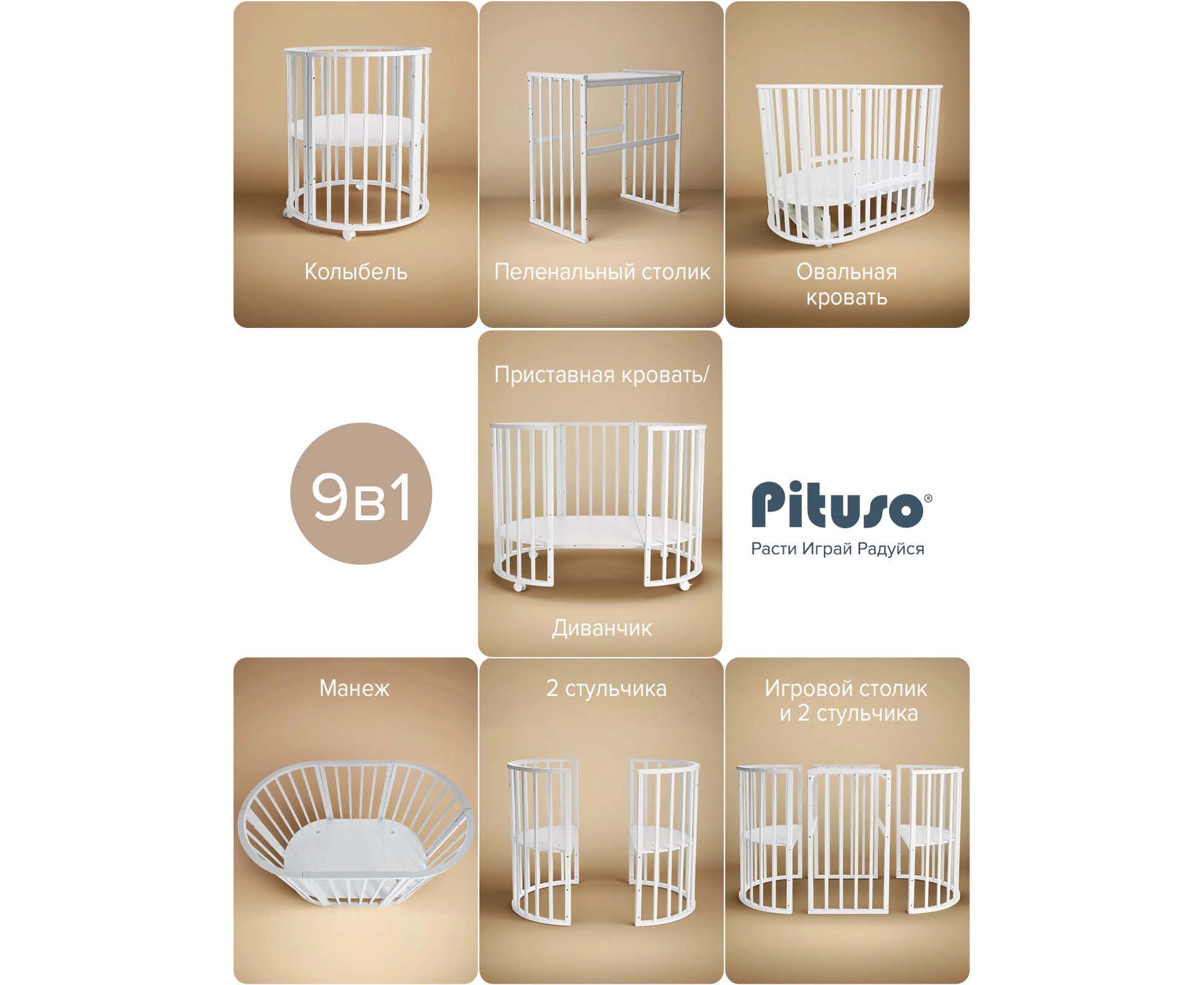 Детская кроватка Pituso Monica 9 в 1, с маятниковым механизмом.