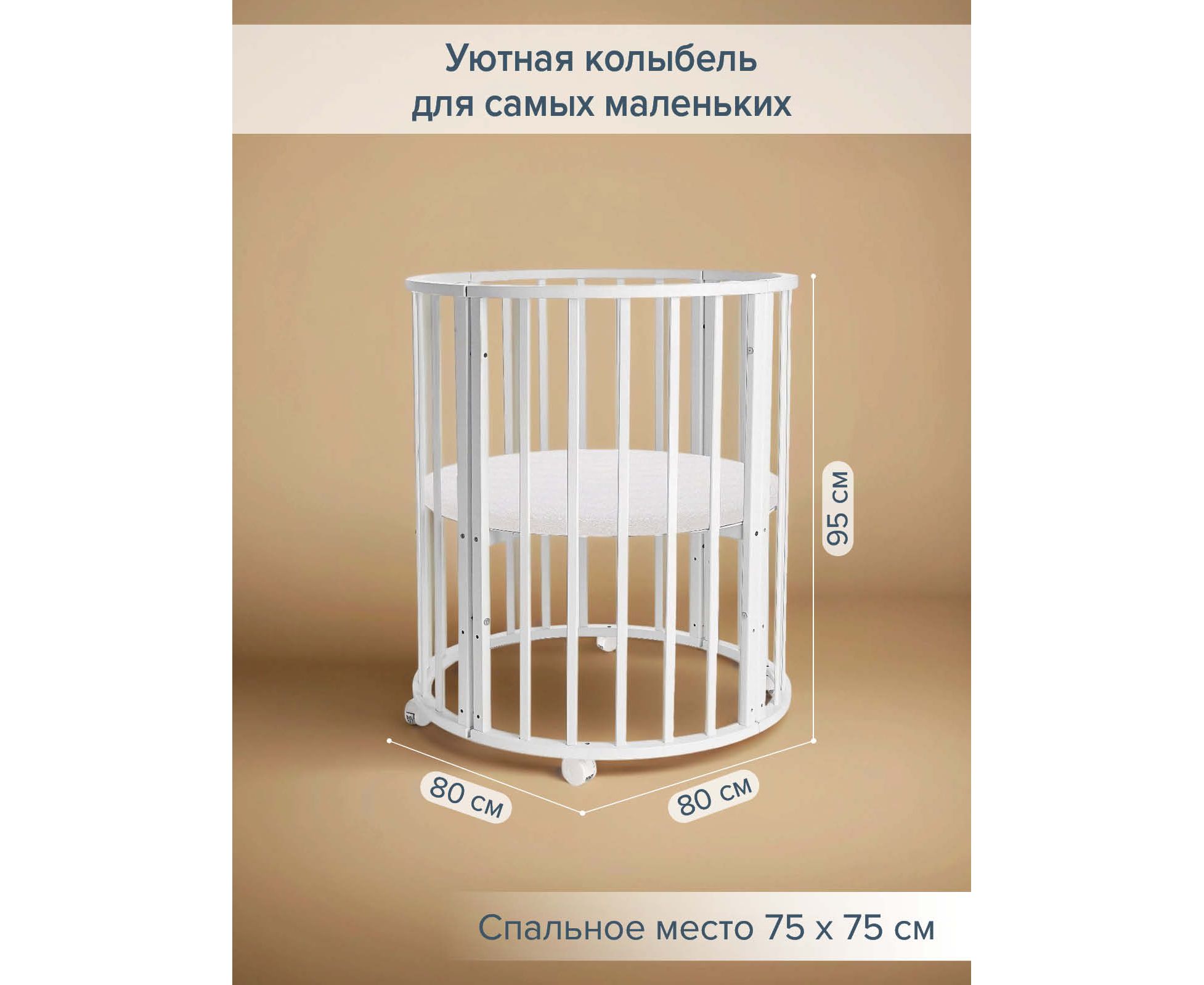 Размер в собранном виде круглой кроватки: 80х80х95 см