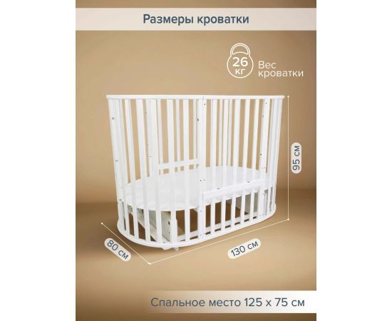 Размер в собранном виде овальной кроватки: 130х80х95 см