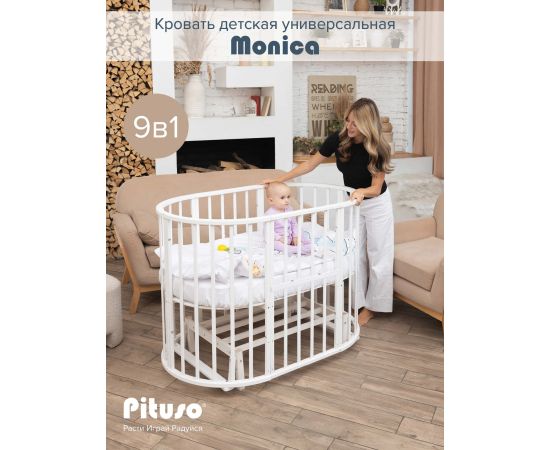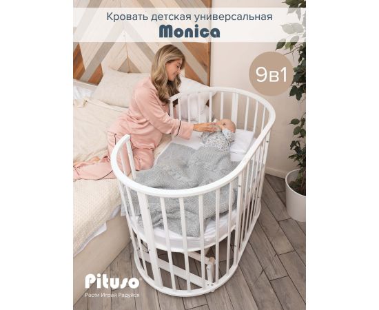 PITUSO Кровать детская универсальная 9в1 Monica маятник поперечный Белый