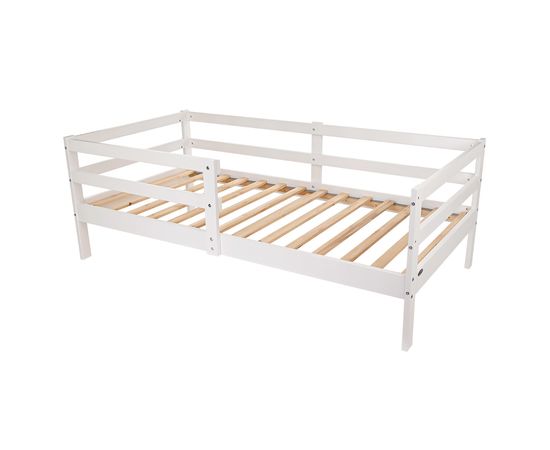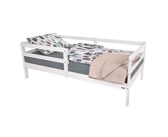 Кровать имеет оптимальный размер спального места 160х80 см и высоту от пола до верхней точки ложе 20 см - это позволит ребенку после пробуждения свободно поставить ноги на пол и комфортно встать с постели.