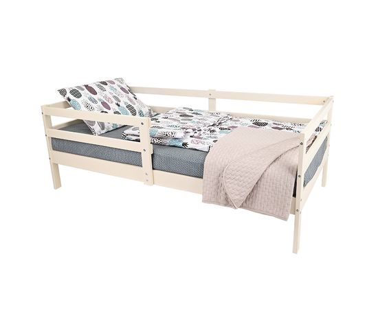 - Съемные защитные бортики (в комплекте) с двух сторон уберегут ребенка от падения с кровати во время сна, которые можно установить как слева, так и справа или вообще без них