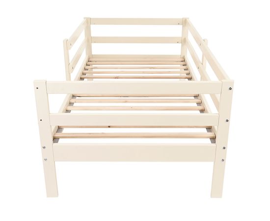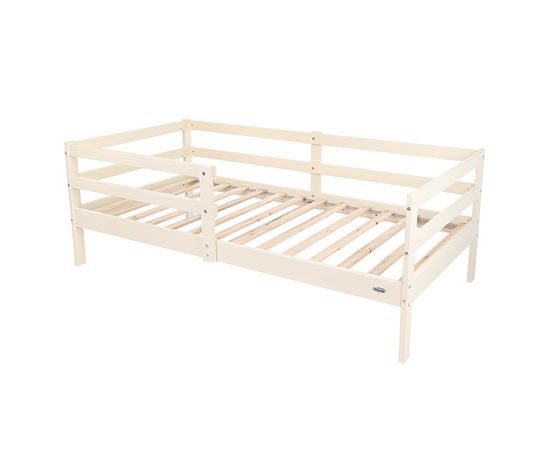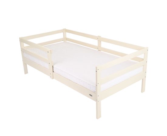 Кровать имеет оптимальный размер спального места 160х80 см и высоту от пола до верхней точки ложе 20 см - это позволит ребенку после пробуждения свободно поставить ноги на пол и комфортно встать с постели.