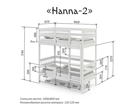 Подъем на верх осуществляется по удобной приставной лесенке, а сами кровати оснащены высокими бортиками, обеспечивающими безопасность.