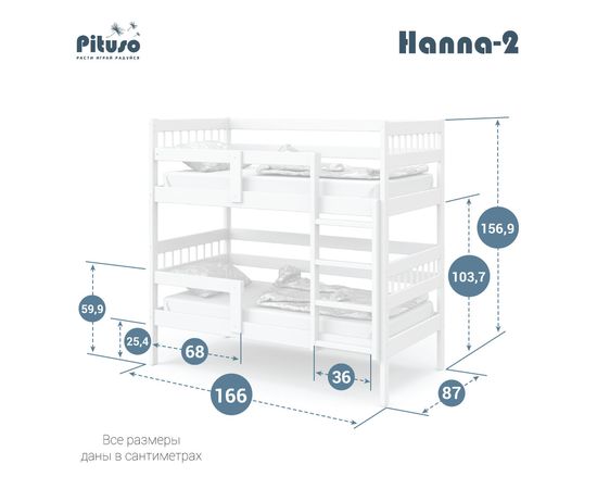 Двухъярусная кровать HANNA 2 позволит создать уютную детскую спальню для двоих детей, не перегрузив ее при этом мебелью.