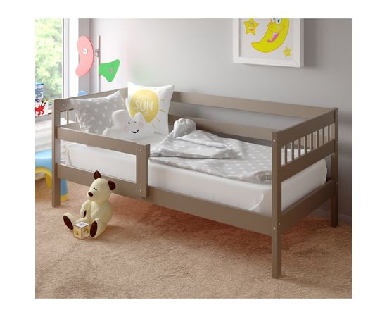 Для безопасности ребенка комплектуется одинарным бортиком, который можно установить как слева, так и справа или вообще без него.