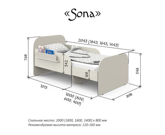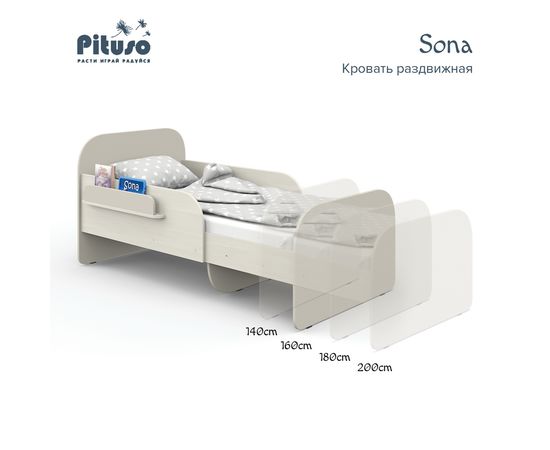 Кровать подростковая раздвижная SONA – великолепная, универсальная, современная эргономичная кровать для любой современной детской комнаты. Эта кровать растет вместе с вашим ребенком и подойдет для детей от 3 до 10 лет.